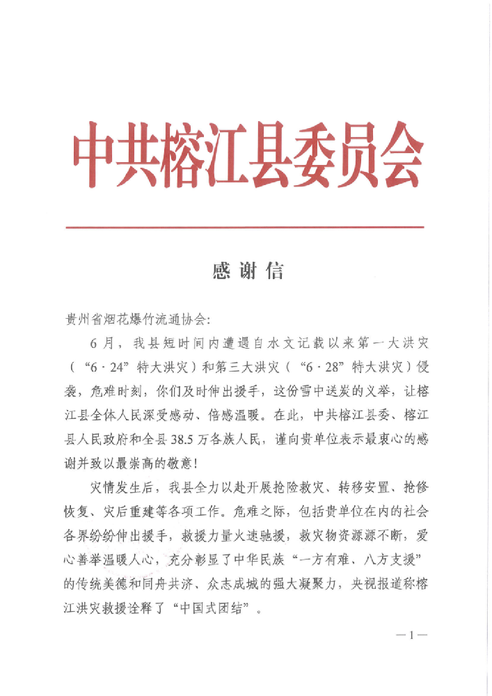 来至榕江县的一封感谢信